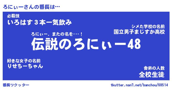 | 意味不明あだ名 | 『ペロリンろにぃー』『永久保存ろにぃー』 |