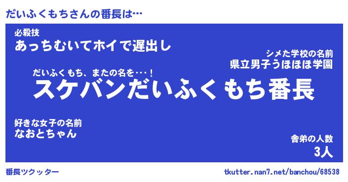 | ヒーロー風カッコイイあだ名 | 『スーパーダイフクモチ』『魔戒騎士ダイ』 |