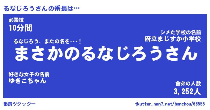 | 男性向けラノベタイトル風あだ名 | 『るなじろうの憂鬱』 |