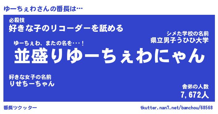 | 肩書あだ名 | 『ゆーちぇわ社長令嬢』『ゆーちぇわ班長』 |