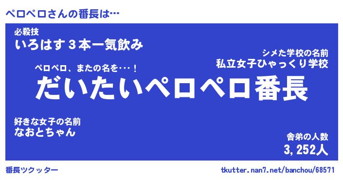 | 意味不明あだ名 | 『ペロリンペロペロ』『永久保存ペロペロ』 |