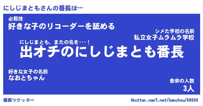 | ポケモン風あだ名 | 『ニシチュウ』『ニシジダネ』 |