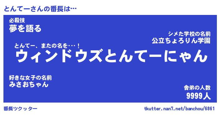 | 意味不明あだ名 | 『ペロリンとんてー』『永久保存とんてー』 |
