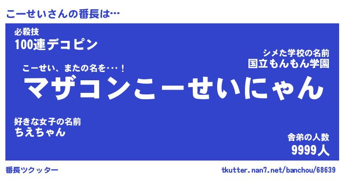 | ヒーロー風カッコイイあだ名 | 『スーパーコーセイ』『黄金騎士コー』 |