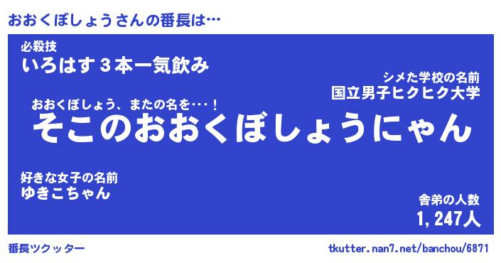 | 2回繰り返すあだ名 | 『おおおお』『おおおお』『ぶんぶん』 |