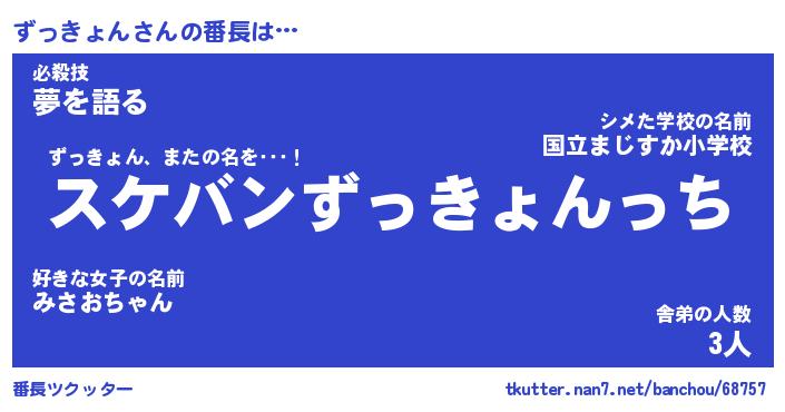 | ヒーロー風カッコイイあだ名 | 『スーパーズッキョン』『銀牙騎士ズッ』 |