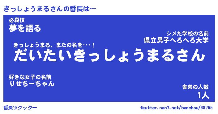 | 男性向けラノベタイトル風あだ名 | 『きっしょうまるの憂鬱』 |