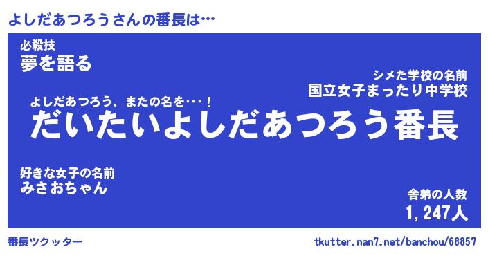 | ポケモン風あだ名 | 『ヨシチュウ』『ヨシダダネ』 |