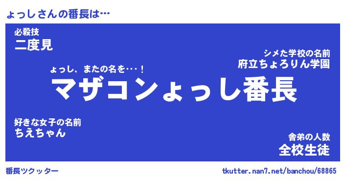 | 肩書あだ名 | 『ょっし店長』『ょっし国家主席』 |