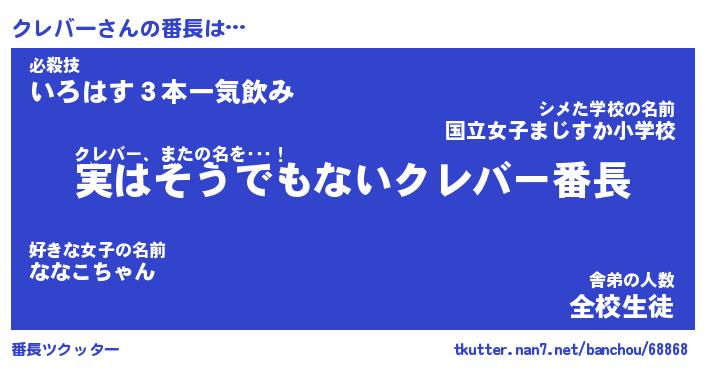| 意味不明あだ名 | 『ペロリンクレバー』『永久保存クレバー』 |