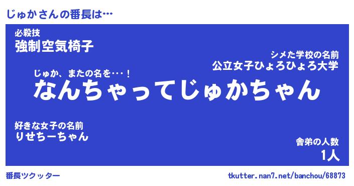 | 肩書あだ名 | 『じゅか社長令嬢』『じゅか大統領』 |