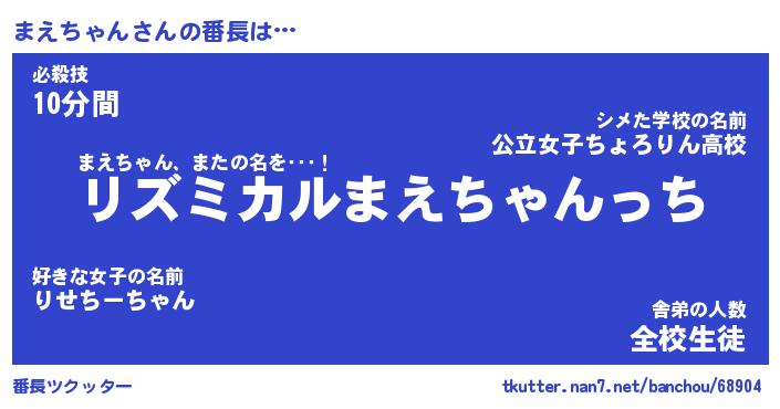 | ファンタジー風あだ名 | 『マエフェル』『エターナルマエチャンー』 |