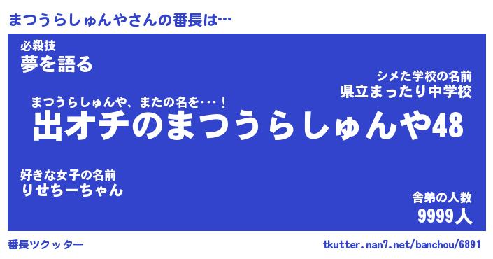 | 肩書あだ名 | 『まつうらしゅんや御曹司』 |