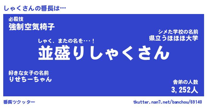 | ヒーロー風カッコイイあだ名 | 『スーパーシャク』『ウルトラしゃくマン』 |