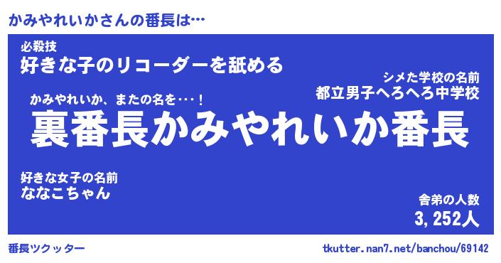| 意味不明あだ名 | 『ペロリンかみやれいか』 |