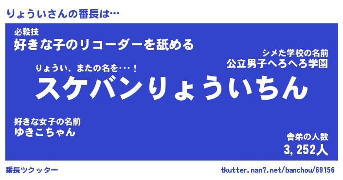 | 意味不明あだ名 | 『ペロリンりょうい』『永久保存りょうい』 |
