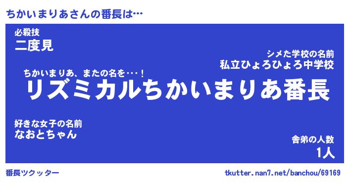 | ヒーロー風カッコイイあだ名 | 『スーパーチカイマリア』『黄金騎士チカ』 |