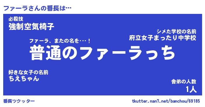| 意味不明あだ名 | 『ペロリンファーラ』『永久保存ファーラ』 |