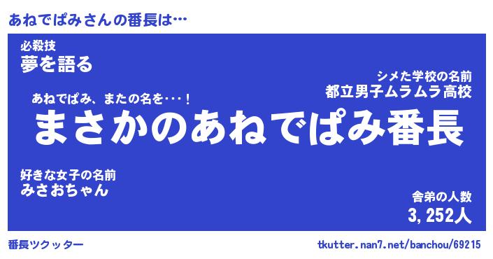 | 肩書あだ名 | 『あねでぱみ社長』『あねでぱみ大統領』 |