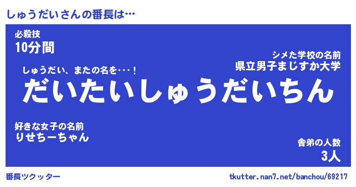 | 男性向けラノベタイトル風あだ名 | 『しゅうだいの憂鬱』 |
