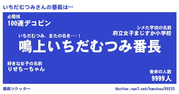 | ピコ太郎風あだ名 | 『イコ二郎』『ピイ八郎』『イチ二郎』 |