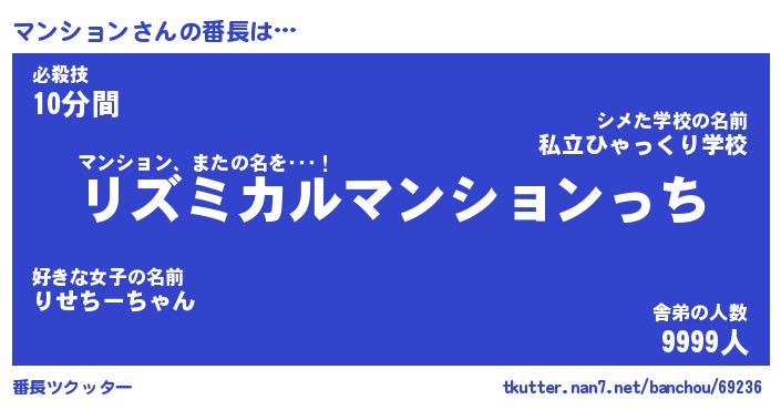 | ファンタジー風あだ名 | 『マンフェル』『エターナルマンションー』 |