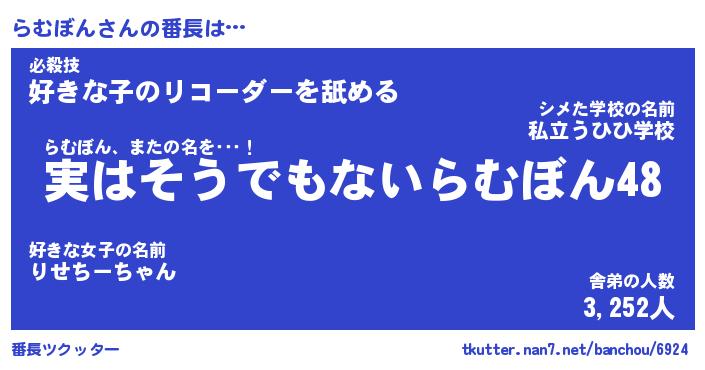 | 意味不明あだ名 | 『ペロリンらむぼん』『永久保存らむぼん』 |