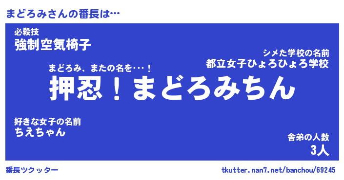 | ヘコむあだ名 | 『まどっふぃ~』『なまこ酢』 |