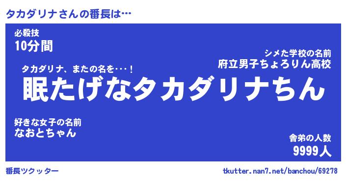 | ヒーロー風カッコイイあだ名 | 『スーパータカダリナ』『暗黒騎士タカ』 |