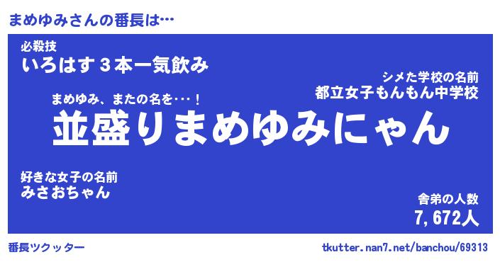 | 意味不明あだ名 | 『ペロリンまめゆみ』『永久保存まめゆみ』 |