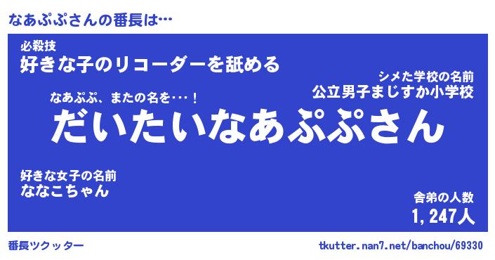| 意味不明あだ名 | 『ペロリンなあぷぷ』『永久保存なあぷぷ』 |