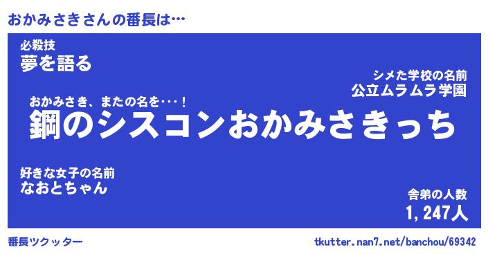 | 伝説のあだ名 | 『封印されしスナイパーおかみさき』 |