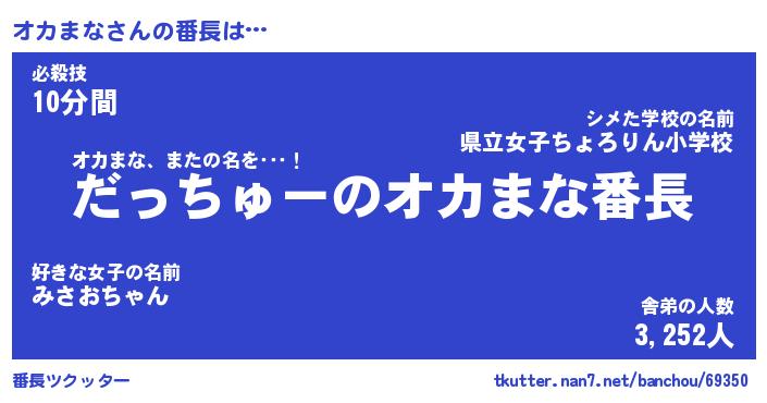 | 2回繰り返すあだ名 | 『オカオカ』『オオカカ』『ぬぷぬぷ』 |
