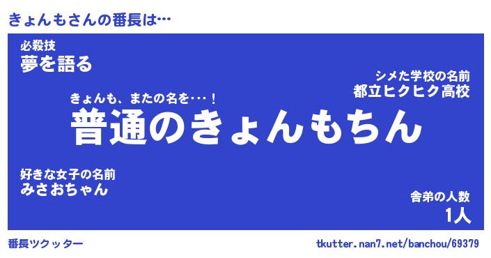 | 伝説のあだ名 | 『不死鳥のスナイパーきょんも』 |