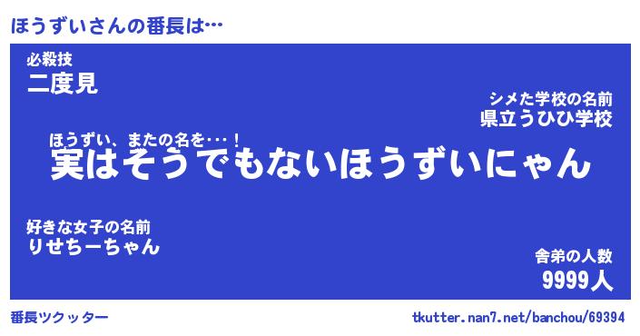 | ヒーロー風カッコイイあだ名 | 『スーパーホウズイ』『天弓騎士ホウ』 |