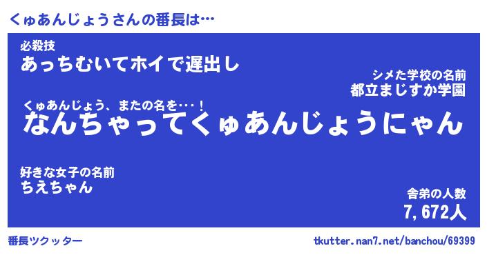 | ヘコむあだ名 | 『くゅにー』『レバニラ』『くゅお』 |
