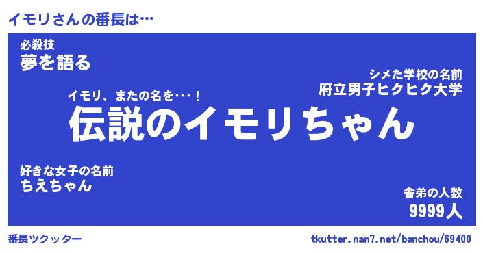 | ファンタジー風あだ名 | 『イモフェル』『エターナルイモリー』 |
