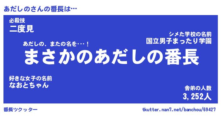 | ファンタジー風あだ名 | 『アダフェル』『エターナルアダシノー』 |