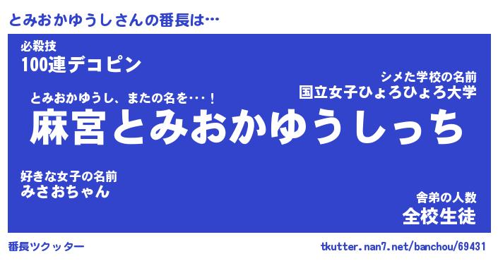 | ヒーロー風カッコイイあだ名 | 『スーパートミオカユウシ』 |