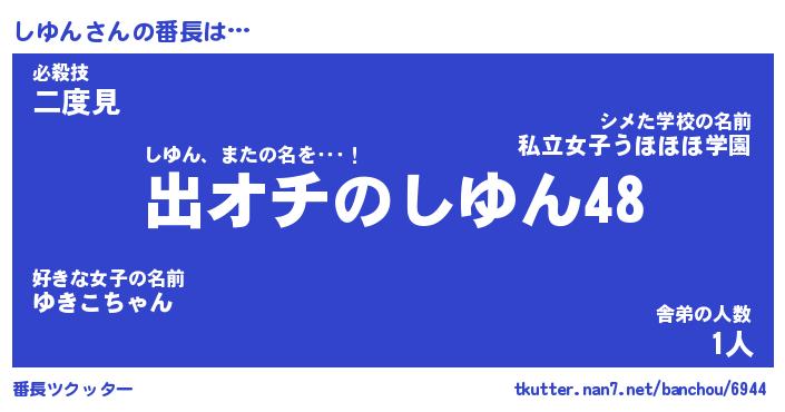 | ヘコむあだ名 | 『しゆふぇ~』『牛乳』『しゆっ子』 |