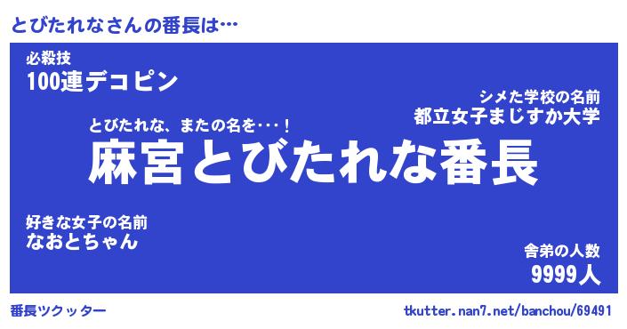 | ヒーロー風カッコイイあだ名 | 『スーパートビタレナ』『黄金騎士トビ』 |