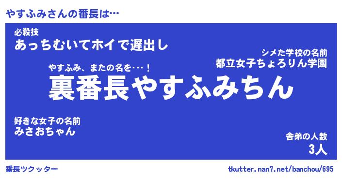 | ヒーロー風カッコイイあだ名 | 『スーパーヤスフミ』『天弓騎士ヤス』 |