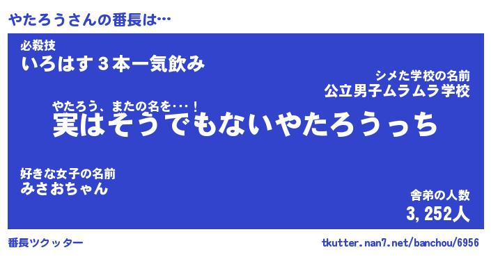 | 意味不明あだ名 | 『ペロリンやたろう』『永久保存やたろう』 |