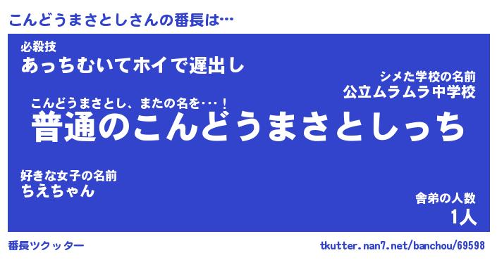 | 男性向けラノベタイトル風あだ名 | 『こんどうまさとしの憂鬱』 |