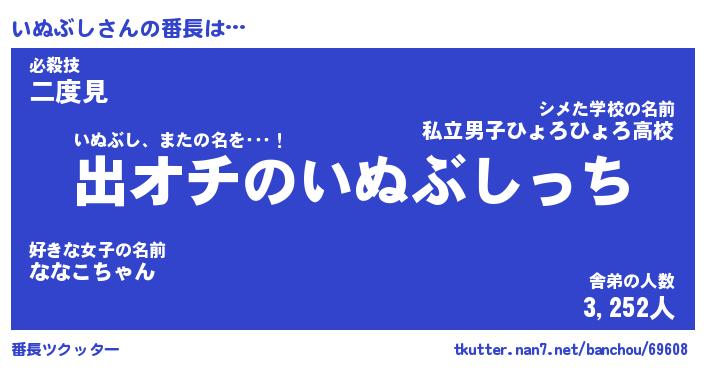 | 意味不明あだ名 | 『ペロリンいぬぶし』『永久保存いぬぶし』 |