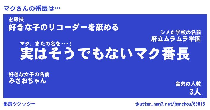 | ヘコむあだ名 | 『マクにゅー』『酢こんぶ』 |