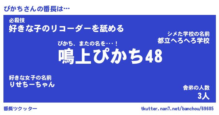 | ポケモン風あだ名 | 『ピカチュウ』『ピカチダネ』 |