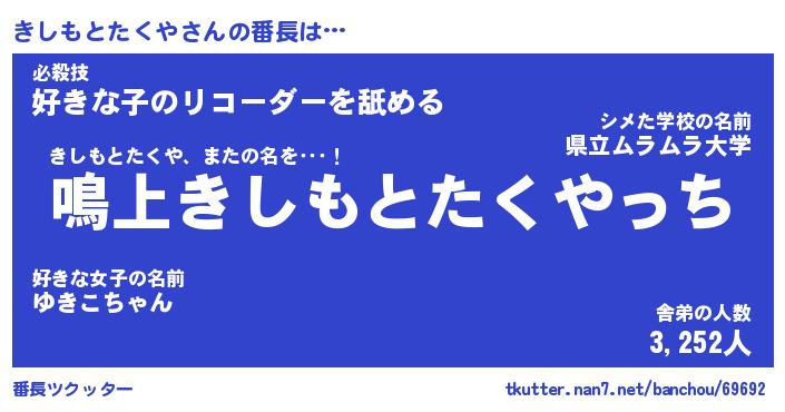 | ヒーロー風カッコイイあだ名 | 『スーパーキシモトタクヤ』 |