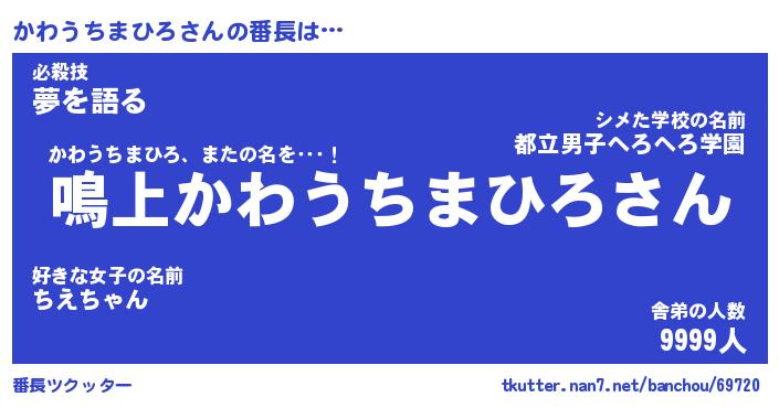 | 男性向けラノベタイトル風あだ名 | 『カワウチマヒロアートオンライン』 |