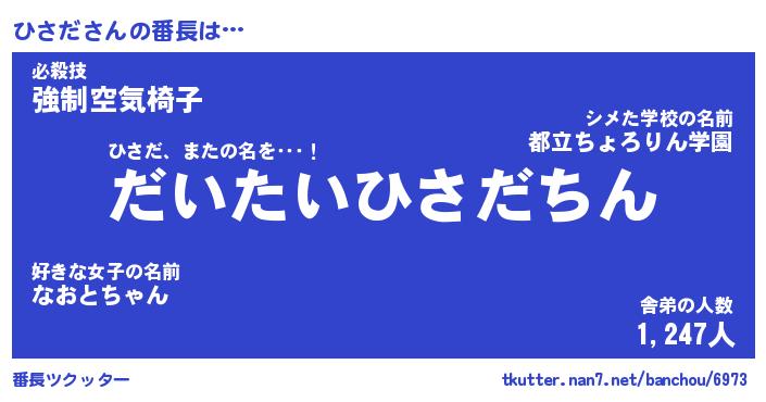 | ヒーロー風カッコイイあだ名 | 『スーパーヒサダ』『ウルトラひさだマン』 |